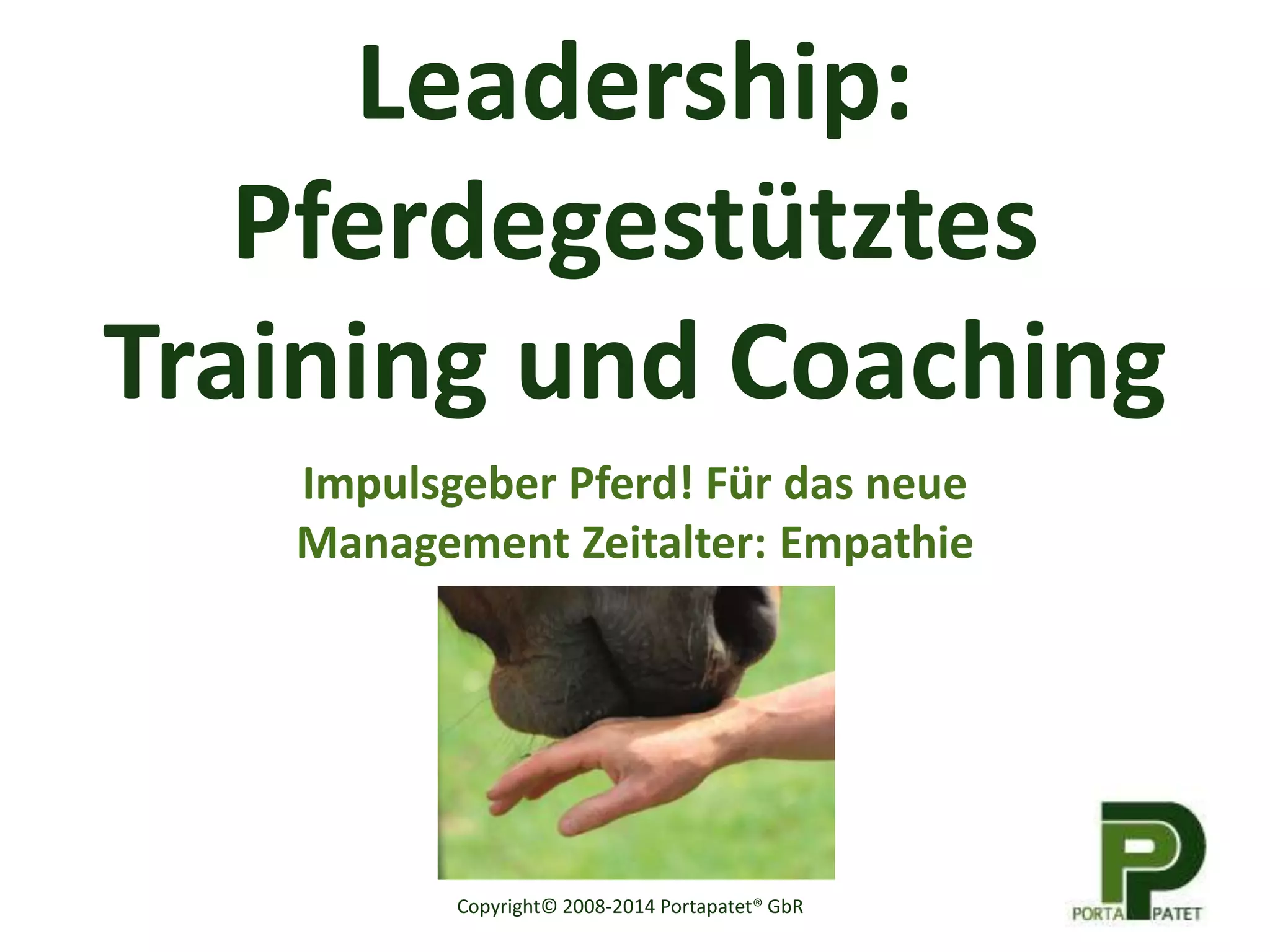 Das Dokument beschreibt pferdegestütztes Training und Coaching, das Führungskräften hilft, ihre Empathiefähigkeit und Kommunikationsklarheit zu verbessern. Pferde dienen als Spiegel für das Verhalten und die Wirkung der Teilnehmer, indem sie sofortiges Feedback geben und zur Selbstreflexion anregen. Die Seminare zielen darauf ab, persönliche und berufliche Fähigkeiten zu stärken, indem sie Erkenntnisse über Beziehungen und Führungsmuster vermitteln.
