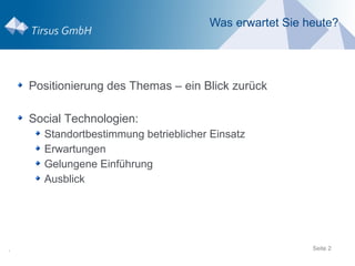Das Dokument behandelt das Konzept von Enterprise 2.0, definiert als den Einsatz von sozialen Softwareplattformen innerhalb von Unternehmen und deren Partnern, und beleuchtet sowohl technische als auch gesellschaftliche Aspekte. Es werden verschiedene Mckinsey-Studien zitiert, die den Nutzen und die Herausforderungen der Implementierung von sozialen Technologien in Organisationen untersuchen, sowie Best Practices für eine erfolgreiche Einführung. Der Fokus liegt auf der Steigerung der Effizienz und Produktivität durch Zusammenarbeit und den verantwortungsvollen Umgang mit sozialen Technologien.
