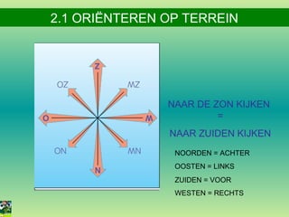 Das Dokument behandelt die Orientierung auf einem Gelände, einschließlich der Ausrichtung nach den Himmelsrichtungen. Es beschreibt die Orientierung anhand von Sonnenständen, Karten und Stadtplänen, um geografische Lagebeziehungen zu verstehen. Zusätzlich werden spezifische Positionen in Städten erläutert, wie die Lage von Meir und der großen Markt relativ zu anderen Punkten.