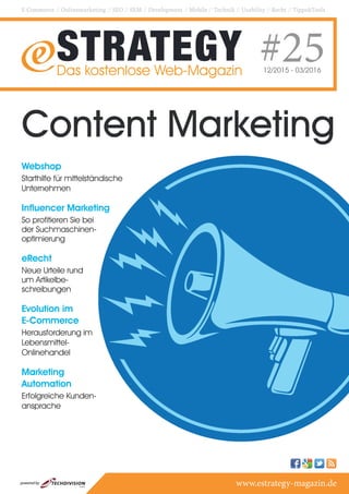 Das Dokument thematisiert die Bedeutung von Content Marketing für mittelständische Unternehmen im E-Commerce und betont die Notwendigkeit kreativer Ansätze, um mit größeren Unternehmen konkurrieren zu können. Es werden verschiedene Aspekte des Online-Marketings wie SEO, Influencer-Marketing und aktuelle rechtliche Informationen behandelt, während auch auf Herausforderungen im Lebensmittel-Onlinehandel eingegangen wird. Die Ausgabe bietet Einblicke und Tipps, um Unternehmen zu unterstützen, ihr Online-Potenzial auszuschöpfen und sich im digitalen Handel zurechtzufinden.
