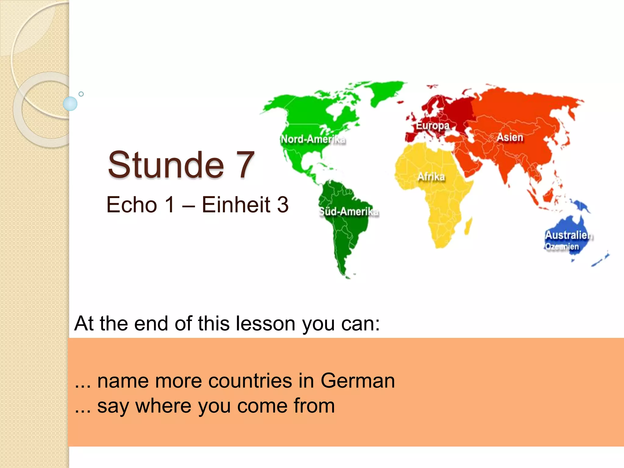 Die Lektion konzentriert sich auf das Erlernen und Üben von Ländernamen auf Deutsch sowie auf die Vorstellung von Herkunft und Identität. Die Teilnehmer führen eine Umfrage in der Klasse durch und schreiben Texte über sich selbst und andere, wobei sie grundlegende deutsche Verben üben. Hausaufgaben umfassen das Lernen des Wortschatzes und die Nutzung von Online-Ressourcen zum Üben der Aussprache und Rechtschreibung.
