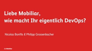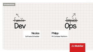 Das Dokument behandelt die DevOps-Strategien von Die Mobiliar, einer der ältesten privaten Versicherungsgesellschaften der Schweiz. Es beschreibt die Modularisierung, Automatisierung und den Einsatz von Microservices zur Verbesserung der Softwarequalität und Effizienz. Zudem wird die kulturelle Entwicklung innerhalb des Unternehmens hervorgehoben, um die tägliche Auslieferung produktiv lauffähiger Software zu ermöglichen.