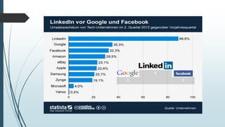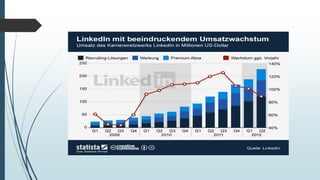 Das Dokument beschreibt LinkedIn, ein webbasiertes soziales Netzwerk für Geschäftskontakte mit über 332 Millionen Nutzern in mehr als 200 Ländern, gegründet 2003. Es enthält Informationen zu den finanziellen Entwicklungen, der Aktienhistorie und den Funktionen, die sowohl Basis- als auch Premiumaccounts bieten. Zudem werden die verschiedenen Kontotypen und deren Merkmale aufgeführt, sowie Quellen zur weiteren Information angegeben.