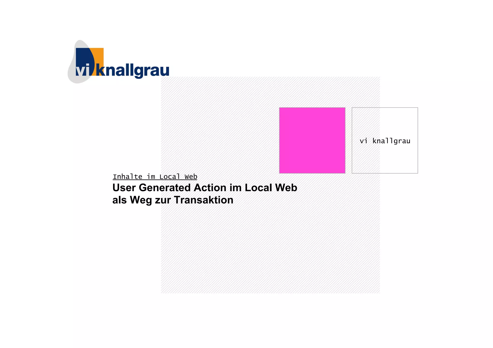 Das Dokument behandelt die Rolle von benutzergenerierten Inhalten im Local Web, wie diese zur Aktivierung von Nutzern und zur Förderung von lokalen Geschäften beitragen. Es hebt die Bedeutung von Nutzerbedürfnissen, lokalem Content und Interaktionen hervor, die durch soziale Medien und Plattformen wie Groupon und Foursquare ermöglicht werden. Das Local Web schließt die Lücke zwischen globalem Zugriff und lokaler Relevanz, indem es personalisierte Informationen und Möglichkeiten für Nutzer bietet, sich zu engagieren.
