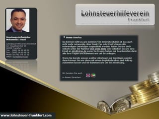 Das Dokument listet verschiedene Begriffe und Dienstleistungen im Zusammenhang mit der Lohnsteuerhilfe und Steuerberatung in Frankfurt auf. Es umfasst Lohnsteuervereine, Steuerhilfevereine, sowie Informationen zu Einkommensteuerhilfe und Steuererklärungen. Außerdem werden englischsprachige Steuerberater und deren Dienstleistungen erwähnt.