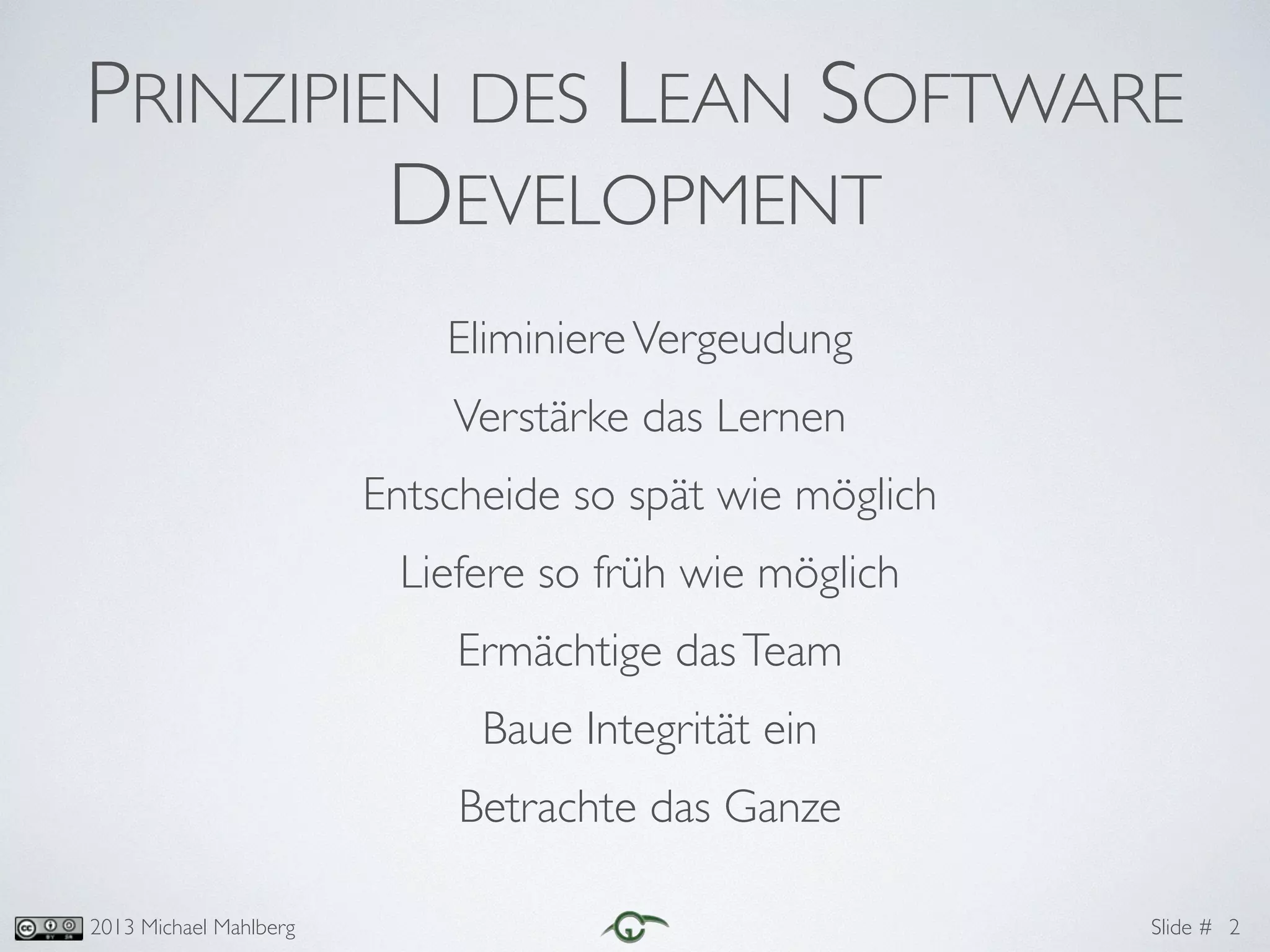 Das Dokument befasst sich mit den Prinzipien des Lean Software Developments, darunter die Eliminierung von Verschwendung, das Verstärken von Lernen, das zeitliche Verzögern von Entscheidungen, die frühzeitige Lieferung, die Ermächtigung des Teams und die Integration von Integrität in den Entwicklungsprozess. Es definiert Verschwendungen, skizziert wertschöpfende Prozesse und hebt Werkzeuge zur Umsetzung der Lean-Prinzipien hervor. Darüber hinaus werden Aspekte wie Feedback-Loops und Teamdynamik thematisiert, um Effizienz und Qualität in der Softwareentwicklung zu steigern.