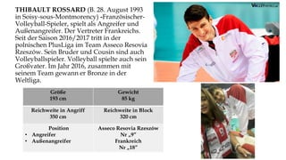 Das Dokument gibt einen Überblick über mehrere bekannte Volleyballspieler, die derzeit für das Team Asseco Resovia Rzeszów in der polnischen PlusLiga spielen. Dazu gehören Magdalena Rzemień, Marko Ivović, Gavin Schmitt, John Gordon Perrin und Jochen Schöps, die alle wichtige Erfolge und Auszeichnungen in ihrer Karriere erzielt haben. Jeder Spieler wird mit seinen persönlichen Informationen, wie Größe, Gewicht und Position, sowie seinen sportlichen Leistungen vorgestellt.