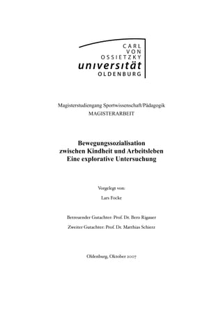 Die Magisterarbeit von Lars Focke untersucht die Bewegungssozialisation zwischen Kindheit und Arbeitsleben und beleuchtet deren Einfluss auf die Gesundheit und das Bewegungsverhalten von Individuen. Durch qualitative Methoden wie Interviews und Fragebögen werden Erfahrungen der Sozialisation analysiert, um herauszufinden, wie unerwünschte Bewegungsorientierungen vermieden und eine positive Bewegungskultur gefördert werden können. Die Arbeit hebt die Verantwortung von Erziehenden hervor, Kinder in einem förderlichen Umfeld zu betreuen, um deren persönliche Entwicklung zu unterstützen.