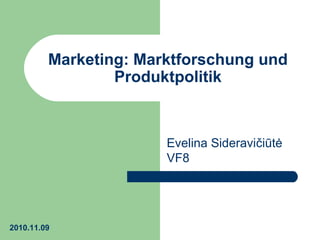 Das Dokument behandelt die Marktforschung als wissenschaftliche Methode zur Marktuntersuchung, um Bedarf und Verbesserungsbedarf an Produkten zu ermitteln. Es beschreibt Ziele wie die Verbesserung des Informationsstands, die frühzeitige Erkennung von Trends und die Reduktion von Fehlentscheidungen. Zudem wird die Produktpolitik erläutert, die alle Aktivitäten zur Gestaltung von Produkten und deren Zusatzleistungen umfasst.