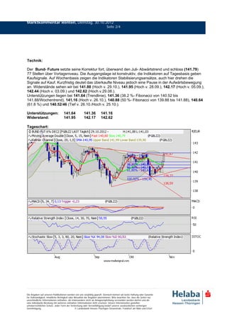 Am 30. Oktober 2012 profitierte der italienische Anleihemarkt von einer günstigen Auktion, während Unsicherheiten bezüglich der griechischen Regierung und der Troika vorherrschten. Es erwartet eine Reihe von Anleiheverkäufen in Europa, wobei die Renditen deutscher Staatsanleihen aufgrund von Risikoaversion stiegen und der US-Markt wegen Hurrikan 'Sandy' weitgehend geschlossen blieb. Technische Analysen deuten auf eine positive Marktentwicklung hin, jedoch könnten bevorstehende Daten zu einem Rückgang der Kaufaktivitäten führen.