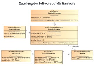 Das Dokument erwähnt mehrere Ressourcen und Lizenzen, darunter Werke von Nana Bastrup und Matvey Slavin sowie Informationen zu den Creative Commons Lizenzen. Es enthält auch Verweise auf das Marte UML-Profil zur Modellierung und Analyse von Echtzeitsystemen. Außerdem werden verschiedene Plattformen und Anwendungen, wie ein Speedometer und ein Musikplayer, erwähnt.