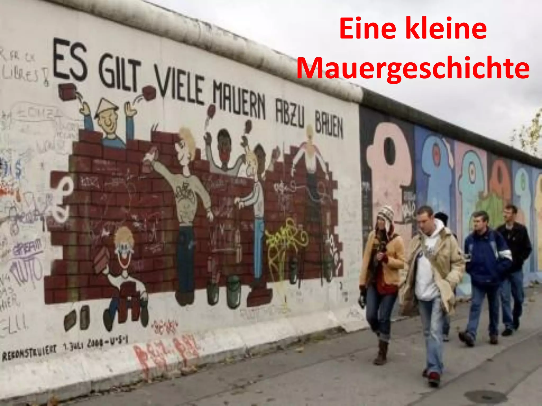 Nach dem Zweiten Weltkrieg wurde Deutschland in vier Besatzungszonen aufgeteilt, aus denen 1949 die Bundesrepublik Deutschland und die Deutsche Demokratische Republik entstanden. Der Bau der Berliner Mauer begann am 13. August 1961, um Fluchtbewegungen über die Grenze zu stoppen, was zu mindestens 136 oder möglicherweise 245 Todesfällen führte. Am 9. November 1989 verkündete Günter Schabowski eine neue Reiseregelung, was zur Feier der Grenzöffnung und dem faktischen Ende der Teilung führte.