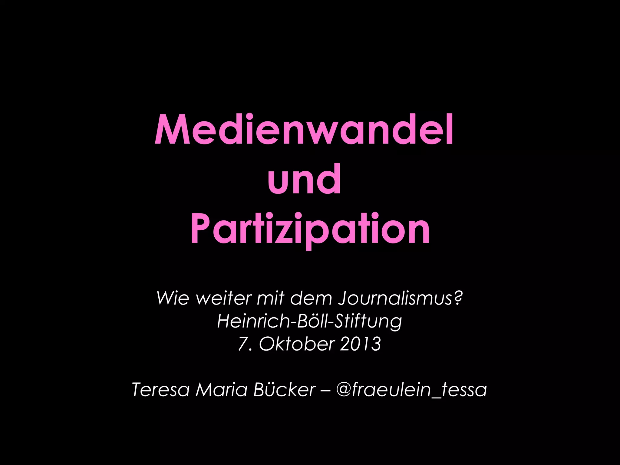 Das Dokument behandelt den Einfluss des digitalen Wandels auf den Journalismus und die veränderten Erwartungen der Nutzer an die Medien. Es beleuchtet die Internetnutzung in Deutschland, den Digital Gender Gap und die Ansichten von jungen Erwachsenen zu politischen Themen sowie den sich entwickelnden Rollen der Journalist_innen im Kontext von sozialen Medien und Partizipation. Abschließend werden Trends und Herausforderungen für die Zukunft des Journalismus skizziert, darunter die Bedeutung von User-generated Content und die Notwendigkeit für Journalist_innen, sich stärker in sozialen Netzwerken zu engagieren.