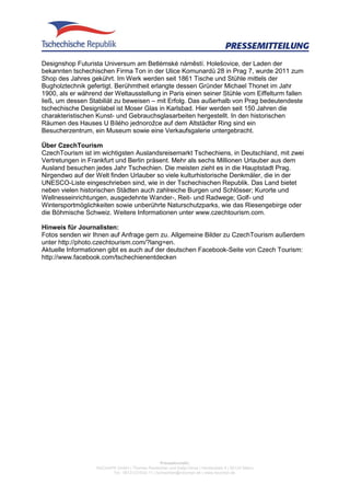 Die junge Kunstszene der Tschechischen Republik erlebt einen Aufschwung, mit zahlreichen Ausstellungen und Designfestivals in Prag und Berlin, die Werke junger Künstler präsentieren. Ein Highlight ist die laufende Ausstellung "křehký mikulov" auf Schloss Mikulov, die innovative Designs mit Fokus auf limitierte Editionen zeigt. Außerdem findet im Oktober die internationale "design blok" statt, die die neuesten Entwicklungen in der Design- und Modeszene von Prag hervorhebt.