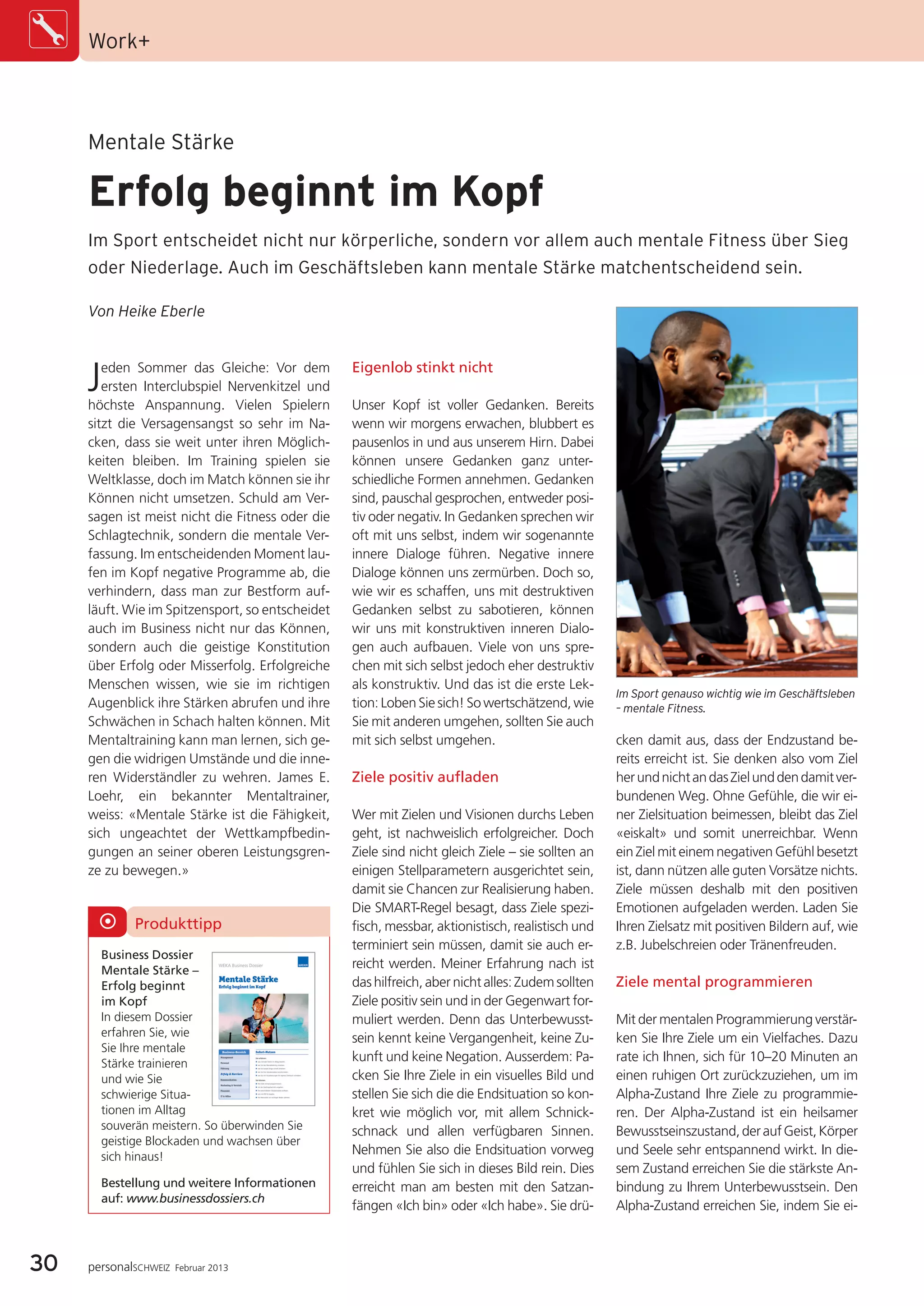 Das Dokument thematisiert die Bedeutung mentaler Stärke im Sport und Geschäftsleben, wobei der Fokus auf positiven inneren Dialogen, Zielsetzung und der Überwindung von Blockaden liegt. Es beschreibt Techniken zur Förderung der mentalen Fitness und empfiehlt, Ziele positiv aufzuladen sowie sich mit konstruktiven Gedanken auseinanderzusetzen. Abschließend werden fünf Wege zur Stärkung der mentalen Leistungsfähigkeit vorgestellt, die auf Selbstreflexion, Fokus und Entspannung abzielen.