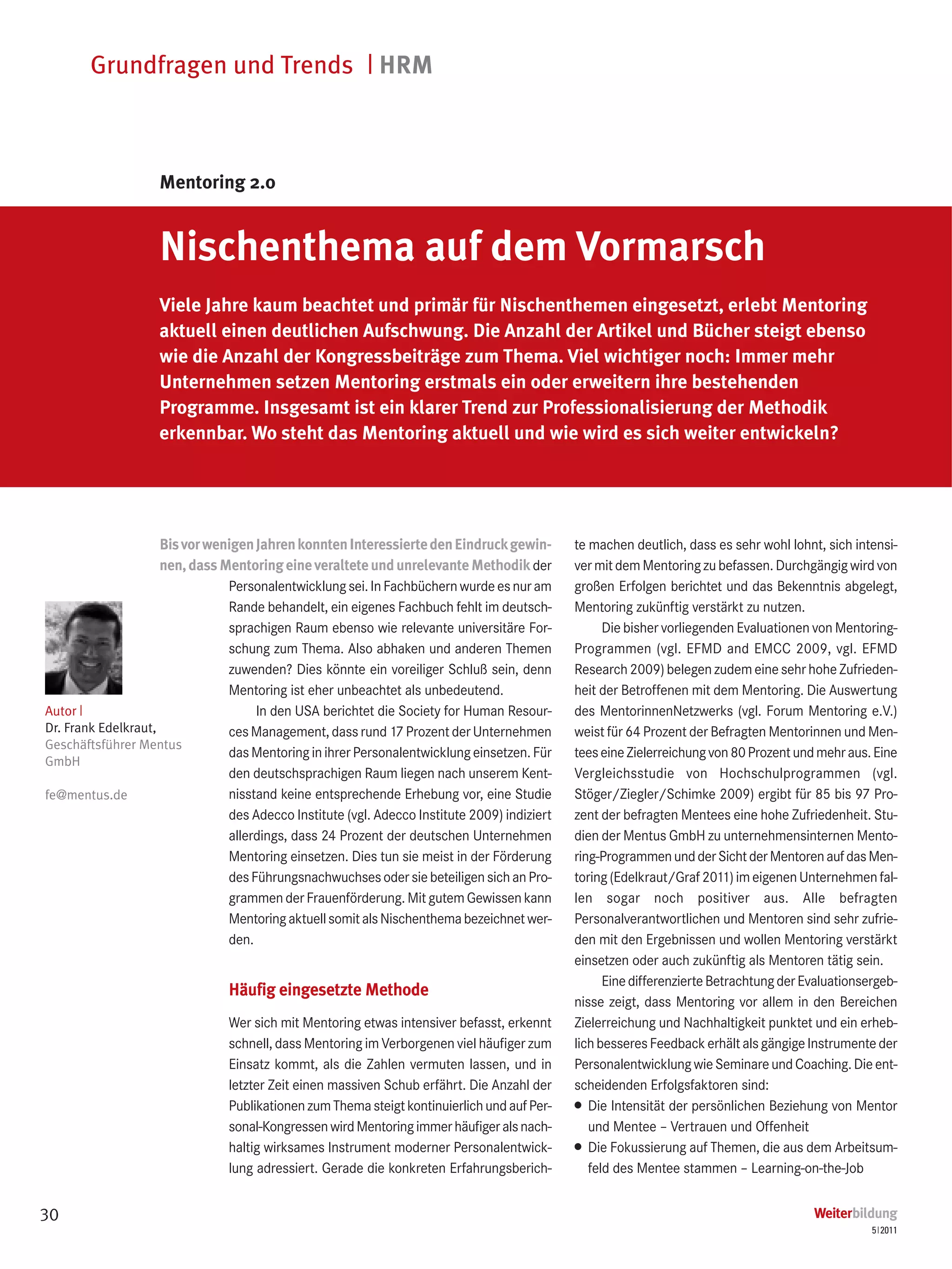 Mentoring erfährt einen Aufschwung in der Personalentwicklung, wobei immer mehr Unternehmen ihre bestehenden Programme erweitern oder neu einführen. Die Zufriedenheit der Teilnehmer ist hoch, und Mentoring wird als effektives Instrument zur Unterstützung der individuellen Entwicklung betrachtet. Aktuelle Trends zeigen einen Fokus auf Kompetenzentwicklung, verstärkten Nutzung von digitalen Formaten und die Integration von Mentoring in umfassendere Personalentwicklungskonzepte.