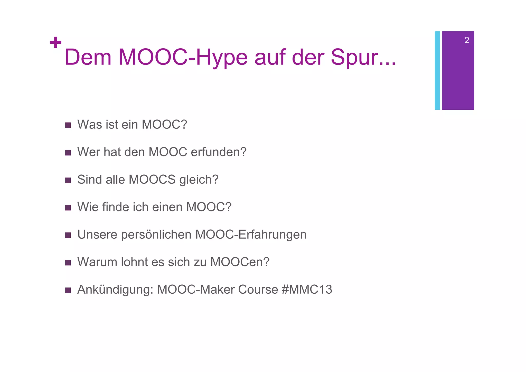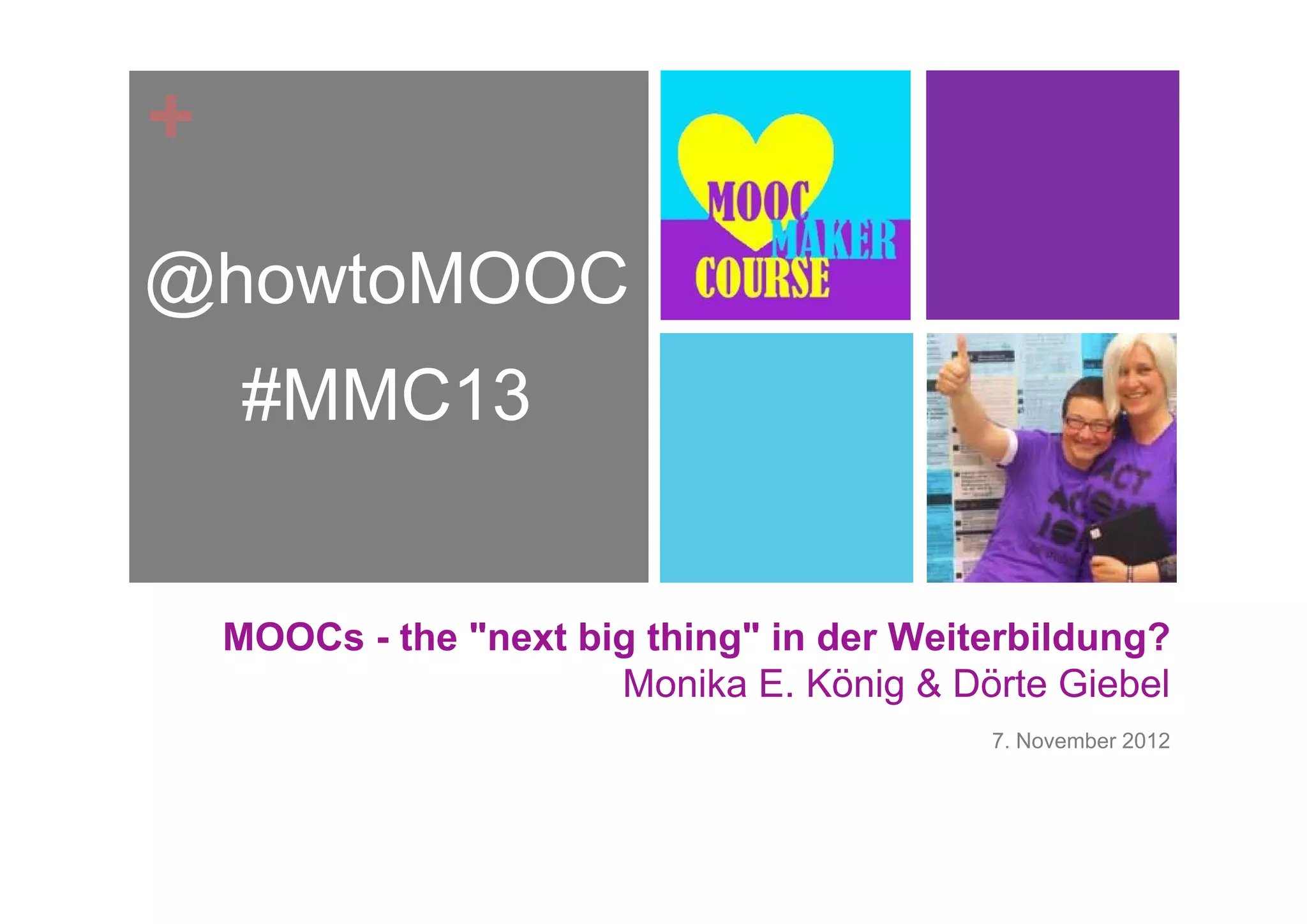 Das Dokument befasst sich mit MOOCs (Massive Open Online Courses) und deren Bedeutung in der Weiterbildung. Es werden Aspekte wie die Definition, Vorteile, Erfahrungen der Verfasser und die Möglichkeit zur Vernetzung im Rahmen von MOOCs thematisiert. Zudem wird auf den MOOC-Maker Kurs 2013 hingewiesen, der in Deutschland stattfinden soll.