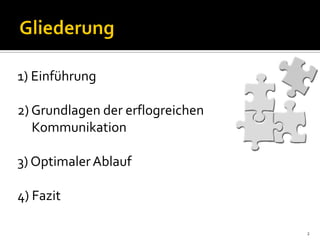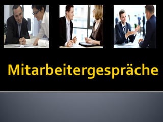 Das Dokument behandelt die Grundlagen und den Ablauf von Mitarbeitergesprächen, die dem Informationsaustausch zwischen Vorgesetzten und Mitarbeitern dienen und Ziele, Probleme sowie Lösungen thematisieren. Es beschreibt verschiedene Arten von Gesprächen, wie Zielvereinbarungs-, Förder- und Beurteilungsgespräche, sowie die Bedeutung von aktiver Kommunikation und Gesprächsführung. Der optimale Ablauf eines Mitarbeitergesprächs umfasst eine sorgfältige Vorbereitung, das Festlegen einer Agenda und eine ruhige Gesprächsatmosphäre.