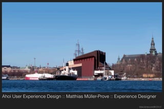 Das Dokument behandelt User Experience Design, einschließlich Usability, Effektivität und Effizienz, und beleuchtet verschiedene Methoden im Interaction Design, wie User Research und Prototyping. Es betont die Bedeutung der Nutzererfahrungen und stellt fest, dass eine gute User Experience entscheidend für die Kundenbindung ist. Anhand von Beispielen wird verdeutlicht, wie Designer Produkte und Dienstleistungen gestalten können, die sowohl nutzbar als auch ansprechend sind.