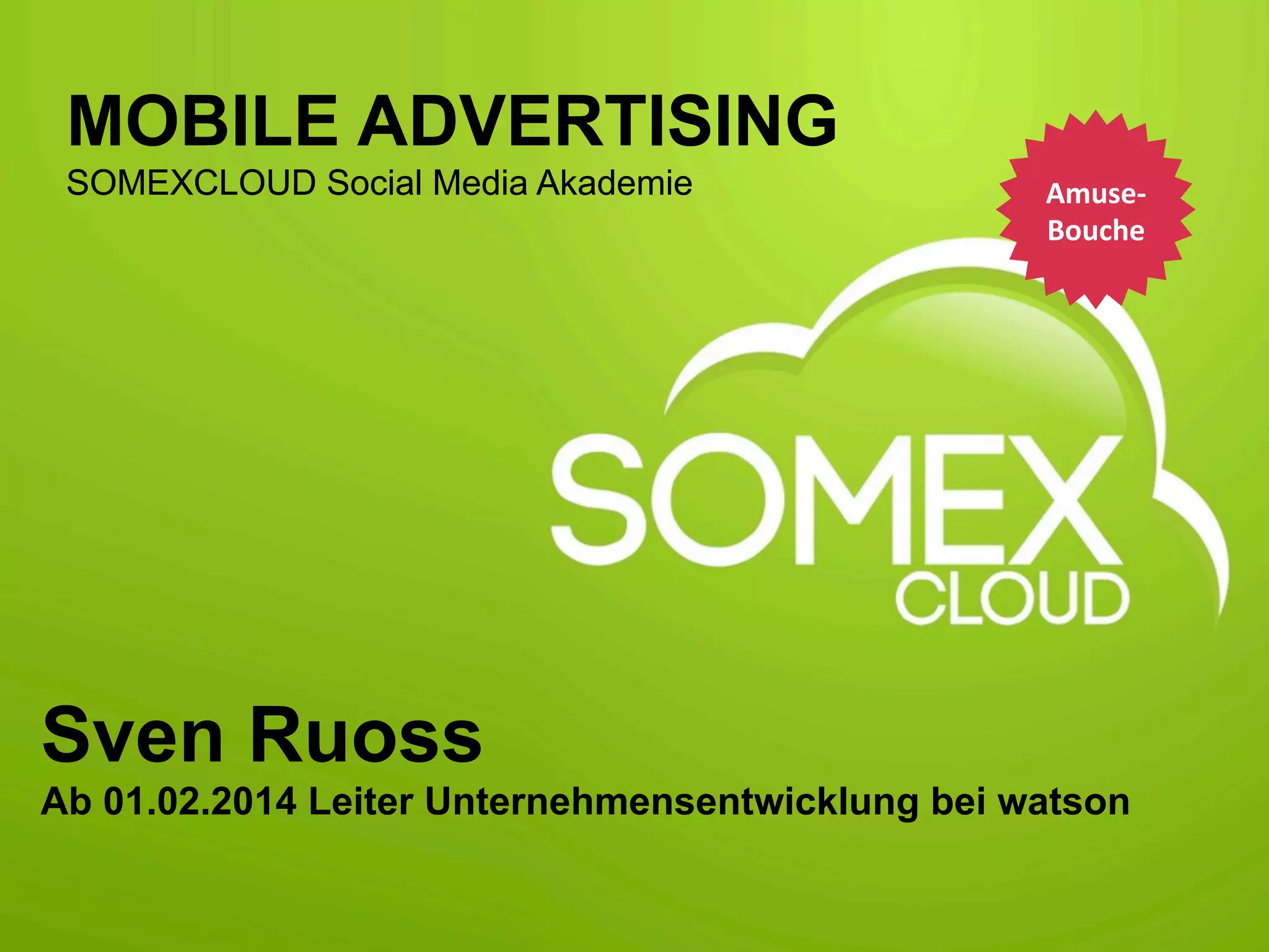 Das Dokument präsentiert einen Überblick über das Modul 'Mobile Advertising', das Teilnehmer über aktuelle Trends, Formate und Herausforderungen im Bereich mobiler Werbung informiert. Wichtige Themen sind Marktteilnehmer, Werbeformen, Buchungsmodelle sowie die Effektivität mobiler Werbung, wie eine Fallstudie von Migros zeigt. Der Mobile-Werbemarkt wird als wachsend und zukunftsorientiert dargestellt, mit dem Fokus auf der Bedeutung von 'Mobile First' in Marketingstrategien.
