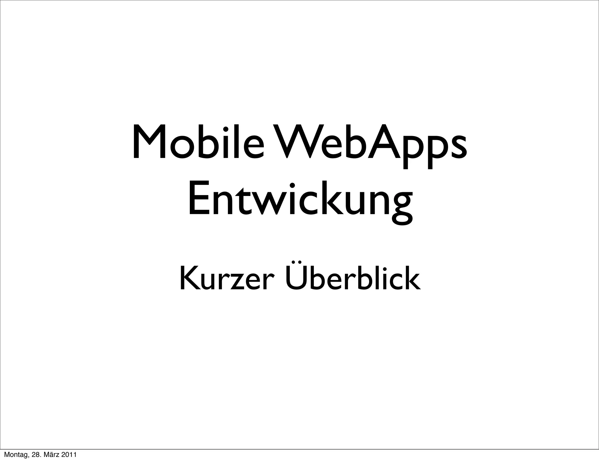 Das Dokument bietet einen Überblick über die Entwicklung von mobilen Webanwendungen, insbesondere im Hinblick auf Technologien, Frameworks und Tools wie HTML5, CSS und JavaScript. Es hebt die Wichtigkeit von Webkit für Smartphones hervor und listet verschiedene Frameworks wie Touch, WinkToolkit und iUI auf, die für die Entwicklung verwendet werden können. Außerdem werden Debugging-Tools wie Web Inspector und Weinre erwähnt, die die Fehlersuche auf mobilen Geräten erleichtern.