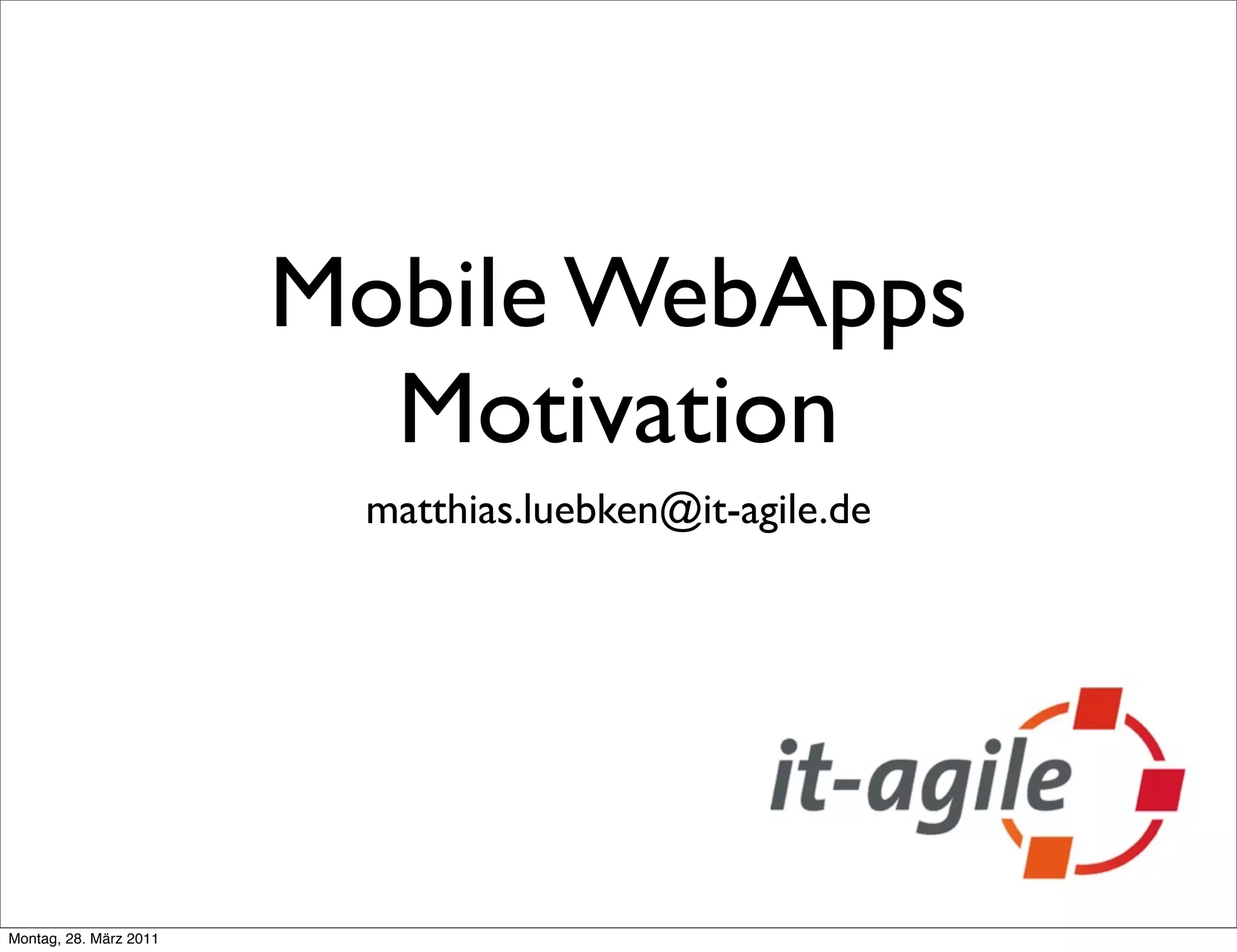 Das Dokument behandelt die Entwicklung von mobilen Webanwendungen und vergleicht verschiedene Ansätze wie native, webbasierte und Hybrid-Apps. Es wird auf die Vor- und Nachteile dieser Ansätze eingegangen, insbesondere hinsichtlich der Benutzererfahrung, Performance und Integration in App-Stores. Hybrid-Apps werden als eine flexible Lösung präsentiert, die die Vorteile beider Welten vereint, jedoch auch ihre eigenen Herausforderungen mit sich bringt.