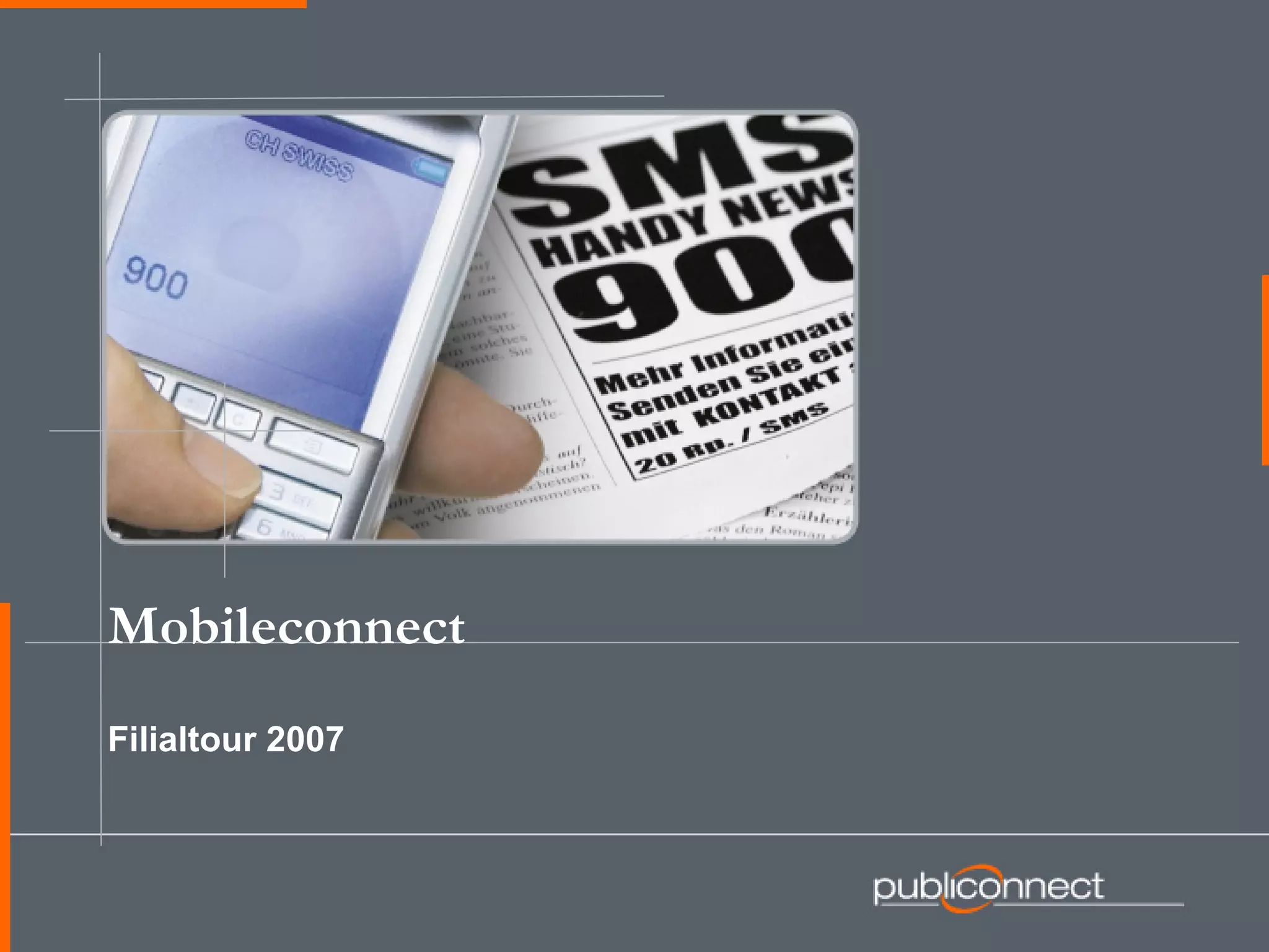 Das Dokument beschreibt das Angebot von MobileConnect, einem Dienst zur Unterstützung von mobilen Marketingkampagnen, der Beratung, Analyse und die Verwaltung mehrerer Teilnahme-Kanäle anbietet. Es werden verschiedene Produkte und Dienstleistungen vorgestellt, darunter interaktive Werbung, Wettbewerbe und mobile Zahlungsverfahren, die darauf abzielen, die Kundenbindung und den Umsatz bei mobile Services zu steigern. Darüber hinaus enthält es Beispiele und Referenzen von Kunden sowie Informationen über die Durchführung von Veranstaltungen und Schulungen.