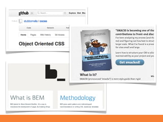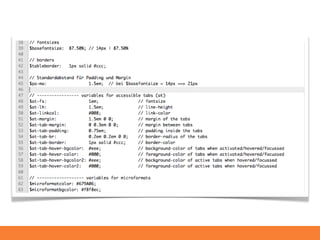 Das Dokument behandelt die modulare Entwicklung von Webseiten und die Trennung von Layout und Design, wobei verschiedene Ansätze wie BEM und die Verwendung von CSS-Präprozessoren wie Sass erläutert werden. Es wird betont, dass Module eigenständige Einheiten sind und dass Semantik bei HTML und CSS wichtig ist, um Pflegeleichtigkeit zu gewährleisten. Für modernes Webdesign wird empfohlen, umfangreiche Modullisten und modulare Ansätze zu verwenden, um die Flexibilität und Wartbarkeit von Websites zu erhöhen.