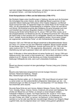 Wolfgang Amadeus Mozart wurde am 27. Januar 1756 in Salzburg geboren und erhielt bereits früh musikalischen Unterricht, was zu seinen ersten Auftritten und Kompositionen führte. Die Familie unternahm zahlreiche Konzertreisen durch Europa, in deren Verlauf Mozart wertvolle Erfahrungen und Bekanntschaften mit anderen Komponisten machte. In den folgenden Jahren entwickelte sich Mozart zu einem der bedeutendsten Komponisten seiner Zeit, erlebte Erfolge mit Opern und wurde 1781 freischaffender Künstler in Wien.