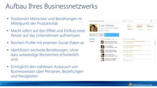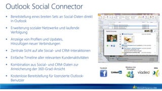 Das Dokument behandelt die zunehmende Bedeutung von Social Media im Recruitment und Vertrieb, wobei 95% der Unternehmen LinkedIn für ihre Rekrutierung nutzen. Es werden Statistiken über die Nutzung von Social Media präsentiert, einschließlich der enormen Anzahl von Benutzern und hochgeladenen Videoinhalten. Zudem wird auf die Integration von Social Media-Daten in CRM-Systeme hingewiesen, um die Vertriebsproduktivität zu steigern und eine ganzheitliche Sicht auf Kunden zu ermöglichen.