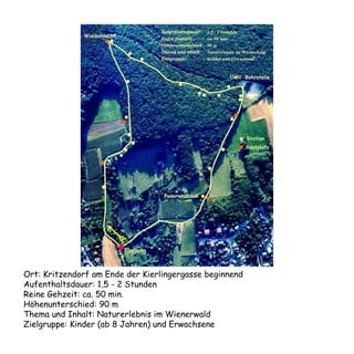 Die Begleitbroschüre für den Kritzendorfer Naturerlebnisweg richtet sich an Kinder ab 8 Jahren sowie Erwachsene und bietet eine 1,5 bis 2-stündige Wanderung mit verschiedenen Stationen, an denen Fragen zur Natur im Wienerwald gestellt werden. Die Fragen sind thematisch sortiert und decken vielseitige Aspekte der Natur ab, von Pflanzenarten bis zu historischem Waldbau. Zusätzlich enthält die Broschüre wertvolle Informationen zur Orientierung und Nutzung des Erlebnisweges.