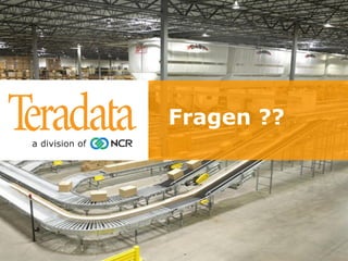 Das Dokument beschreibt die Architektur und Funktionen des Teradata Data Warehouses, das für die Speicherung und Analyse unternehmensrelevanter Daten wie Verkaufs- und Nutzungszahlen konzipiert ist. Es betont die hohe Verfügbarkeit, Skalierbarkeit und Leistung durch bedingungslose Parallelität und ein durchdachtes Redundanzsystem. Die Hardwarekonfiguration am Beispiel von Vodafone zeigt eine umfassende Infrastruktur mit zahlreichen Knoten und Hochleistungsressourcen.