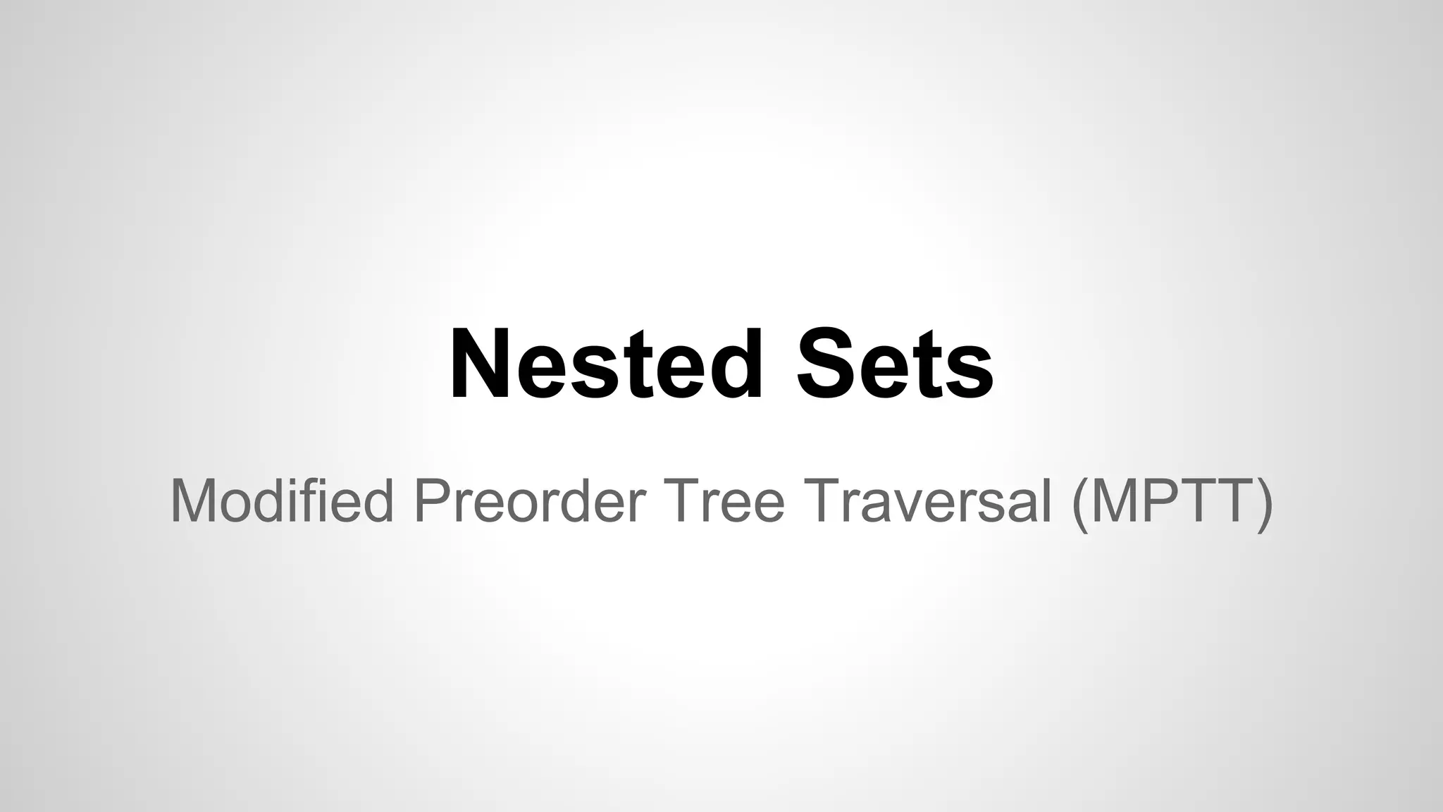 Das Dokument behandelt die Implementierung von Baumstrukturen in Datenbanken, insbesondere durch Modi wie 'modified preorder tree traversal' (MPTT) und 'nested sets'. Es vergleicht die Leistung dieser Methoden in MySQL und PostgreSQL und zeigt, dass MPTT eine bessere Performance bei Abfragen bietet, während das Einfügen oder Löschen von Knoten bei beiden Methoden unterschiedlich komplex ist. Zudem werden Django-Bibliotheken zur Unterstützung dieser Baumstrukturen vorgestellt.