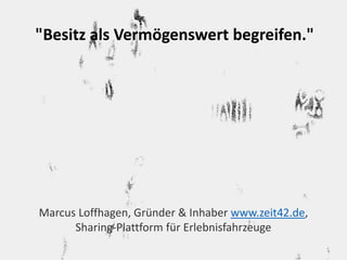 Das Referat von Marcus Loffhagen behandelt die Auffassung von Besitz als Vermögenswert, der durch Vermietung zu Einnahmen führen kann. Dabei werden verschiedene Arten von Besitz, insbesondere alltägliche Gegenstände, und deren Potenzial zur Generierung von passivem Einkommen thematisiert. Die Vorstellung der Sharing Economy verändert herkömmliche Geschäftsmodelle und ermöglicht eine bessere Nutzung von Ressourcen.