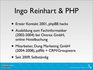 Das Dokument beschreibt die Entwicklung und Installation von NetBeans für PHP-Entwickler, einschließlich der Geschichte des Tools und seiner Integration in verschiedene Betriebssysteme wie Windows, Linux und macOS. Es werden die Funktionen und Vorteile von NetBeans 6.5 und 7 für PHP-Entwickler, die von Sun Microsystems bereitgestellt werden, hervorgehoben, sowie nützliche Tastenkombinationen und Ressourcen für weitere Informationen. Das Programm bietet Unterstützung für die Entwicklung, Bereitstellung und das Debugging von PHP-Anwendungen mit verschiedenen Funktionen zur Codevervollständigung und Syntaxhervorhebung.