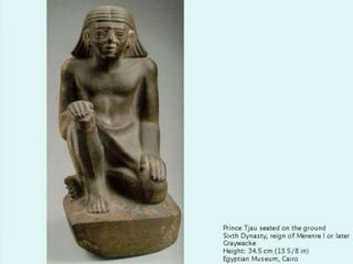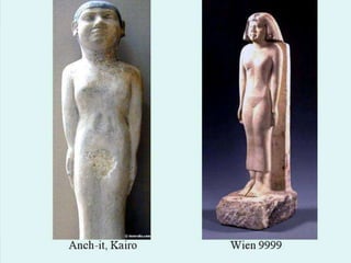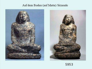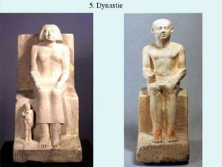 Das Dokument befasst sich mit Statuen von Privatpersonen aus verschiedenen Dynastien des alten Ägypten, insbesondere der 3. bis 6. Dynastie. Es erwähnt zahlreiche Standorte und Museen, die diese Statuen beherbergen, wie Berlin, Kairo, Boston und Brooklyn. Außerdem werden spezifische Figuren und deren Bedeutung in der ägyptischen Geschichte angesprochen.