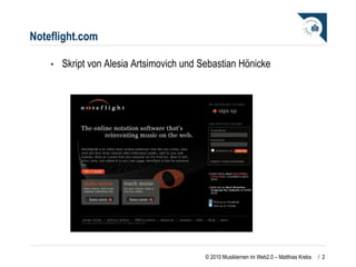 Noteflight ist ein kostenloses Online-Notensatzprogramm, das Benutzern ermöglicht, Musiknotationen zu erstellen, anzuhören und zu teilen. Es bietet zahlreiche Funktionen wie die Möglichkeit, mit verschiedenen Instrumenten zu arbeiten, Kompositionen zu speichern und zu drucken, sowie eine education-Version für Schüler und Lehrer, die eine effektive Verwaltung von Partituren ermöglicht. Ein pädagogisches Konzept zur Nutzung von Noteflight im Unterricht fördert die kreative Auseinandersetzung mit Instrumenten und Klanggestaltung.