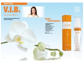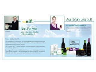Das Dokument beschreibt die Gründung und Entwicklung des Unternehmens Re-Vita, das Nahrungsergänzungsmittel in flüssiger Form produziert und eine langjährige Zusammenarbeit mit der UNESCO pflegt. Es werden auch Details zu den Umsätzen und Produktionsstätten des Unternehmens in verschiedenen Ländern sowie die Marke Pierre Lang und deren Wert vermittelt. Zudem werden die Umsätze pro Berater und die Mitarbeiterzahl in Europa erwähnt.