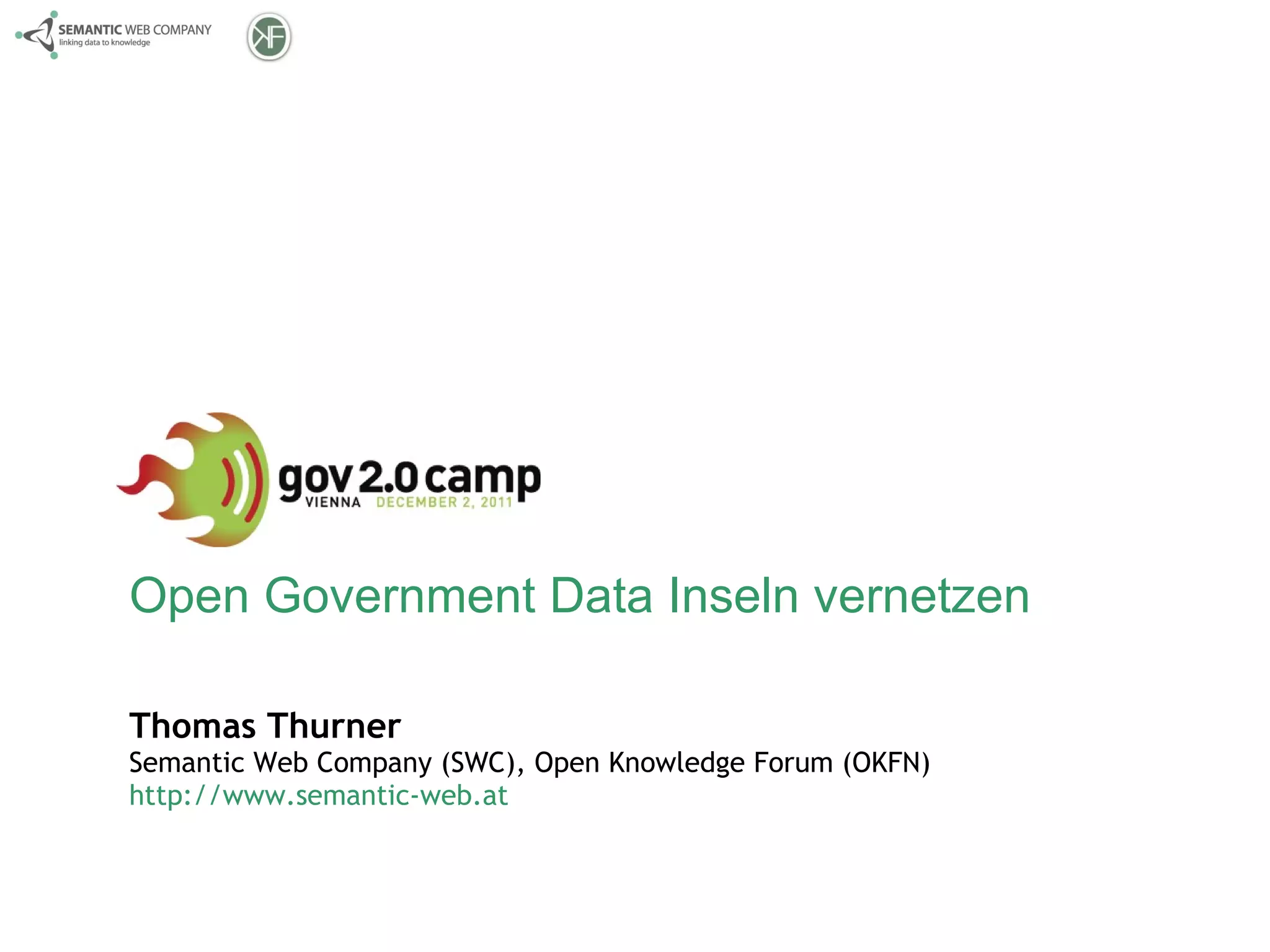 Das Dokument von Thomas Thurner diskutiert die Fortschritte und Herausforderungen bei der Vernetzung offener Regierungsdaten seit 2010, einschließlich der Einführung von Datensätzen, maschinenlesbaren Formaten und offenen Katalogen. Es betont die Bedeutung von Mehrsprachigkeit, internationalem Datenaustausch und der Integration in E-Government und Smart City-Initiativen. Die Zusammenarbeit zwischen verschiedenen Städten und die Schaffung einer gemeinsamen Basis für die Datenverknüpfung werden hervorgehoben.