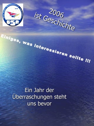 Das Dokument kündigt an, dass das neue Jahr Herausforderungen für den Verein mit sich bringen könnte, da der Vorstand zurücktritt und es Fragen zur Zukunft des Vereins gibt. Es wird hervorgehoben, dass der bisherige Vorstand gute Leistungen erbracht hat, aber die Mitglieder des Vereins scheinbar wenig Interesse an der Situation zeigen. Der Verfasser, Roland Ott, drückt seine Dankbarkeit gegenüber dem Vorstand aus und hofft auf Unterstützung in der Veränderungsphase.
