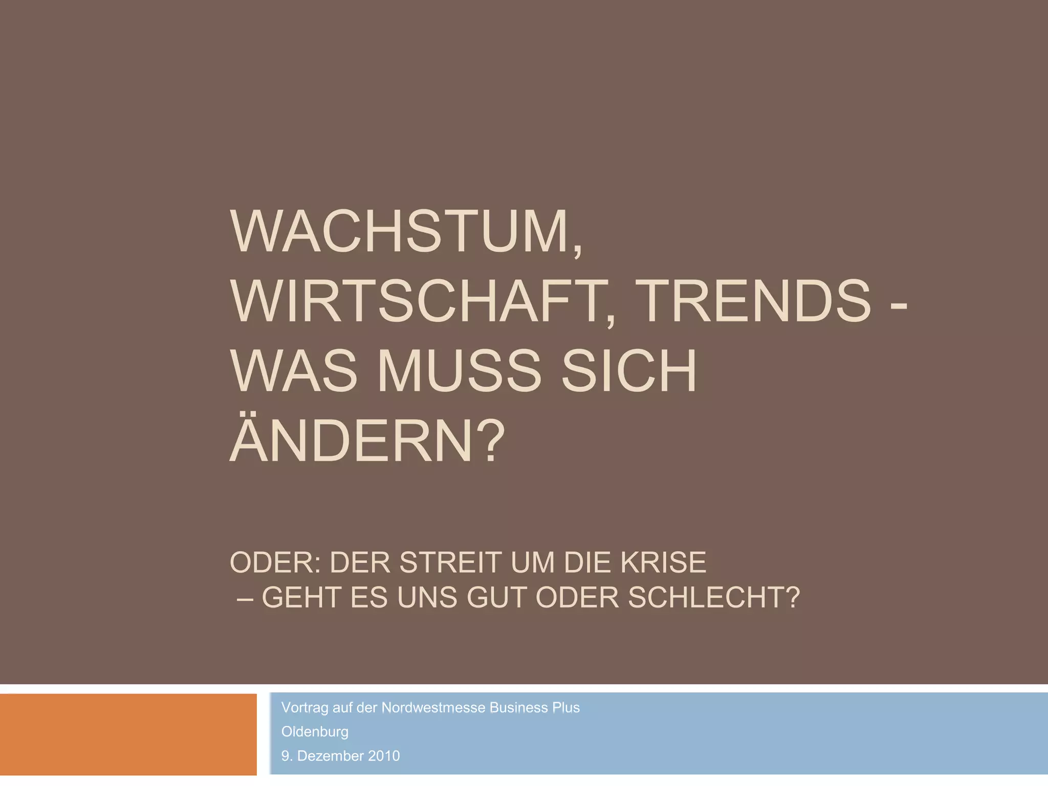 Der Vortrag diskutiert die Herausforderungen und Veränderungen der Wirtschaft, insbesondere im Hinblick auf die aktuellen Wachstumsmodelle in Europa und Amerika. Es wird betont, dass Innovationen und qualitatives Wachstum notwendig sind, um den zukünftigen Generationen eine nachhaltige wirtschaftliche Basis zu bieten. Zudem wird hervorgehoben, dass Vertrauen und Planungssicherheit essenziell sind, während der Staat die Finanzmärkte regulieren und Unternehmen nachhaltige Strategien fördern sollten.