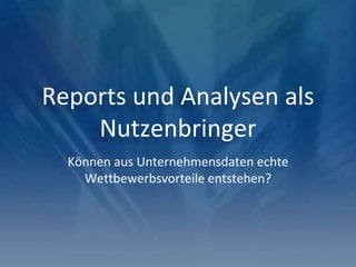 Der Bericht von Oliver Krizek beleuchtet, wie Unternehmen durch die Nutzung von Berichten und Analysen Wettbewerbsvorteile aus Unternehmensdaten erzielen können. Er erklärt die Entwicklung des Unternehmens navax und seine strategischen Ansätze zur Verbesserung von Reporting und Informationsmanagement, um eine stärkere Marktposition zu erreichen. Schlüsselfaktoren für den Erfolg umfassen die Qualität der Daten, innovative Technologien und ein strukturiertes Kennzahlensystem.