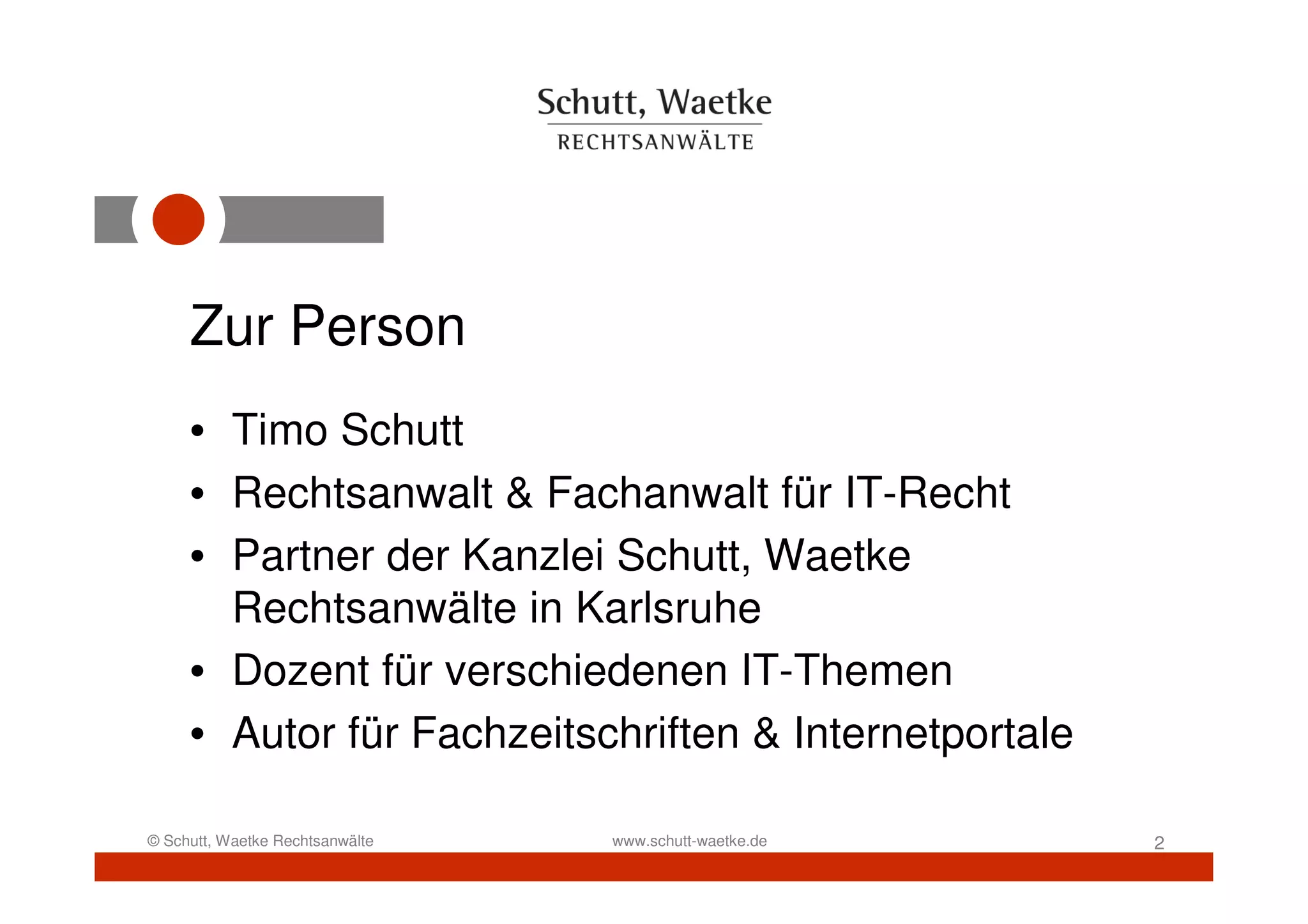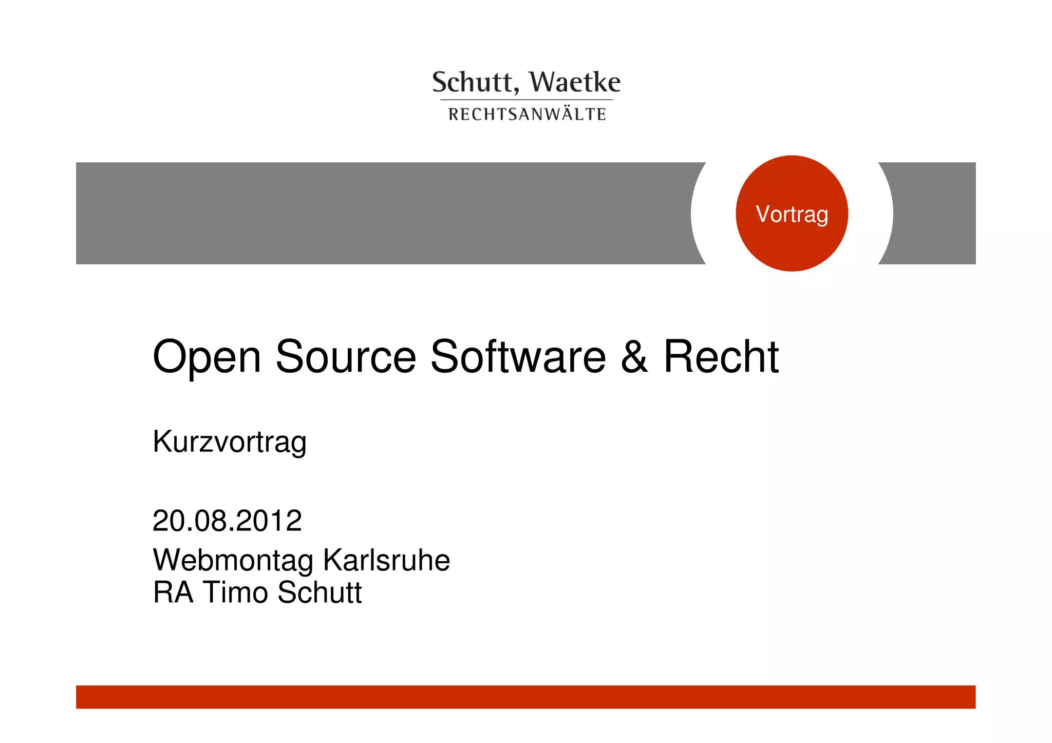 Der Vortrag von Timo Schutt behandelt die rechtlichen Aspekte von Open Source Software (OSS) und ihren Lizenzen, darunter die GPL und LGPL, sowie die damit verbundenen Freiheiten und Einschränkungen. Es wird diskutiert, wie OSS-Lizenzen im deutschen Recht eingeordnet werden und welche rechtlichen Herausforderungen sich daraus ergeben, einschließlich der Haftung und of möglicher Urheberrechtskonflikte. Abschließend wird auf die Bedeutung einer sorgfältigen Prüfung bei der Verwendung von OSS in kommerziellen Softwareprojekten hingewiesen.