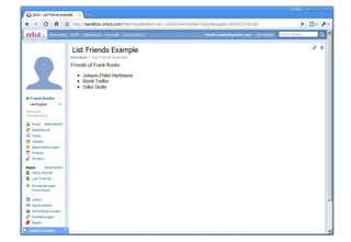 Die Präsentation von Frank Ruske bei der International PHP Conference behandelt OpenSocial und dessen Implementierung für soziale Anwendungen, inklusive technischer Aspekte wie REST-APIs und JSON-RPC. Er erläutert auch die Struktur und Funktionen von Gadgets, die Nutzerinteraktionen ermöglichen, sowie die Integration in Apache Shindig. Abschließend werden praktische Beispiele und Links zur weiteren Vertiefung zur Verfügung gestellt.