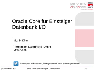 Das Dokument beschreibt die Grundlagen der Oracle-Datenbank, einschließlich I/O-Operationen, Automatic Storage Management (ASM) und Storage Sizing. Es bietet Einblicke in verschiedene I/O-Typen, ihre Funktionsweise und deren Optimierung. Zielgruppen sind Fachleute, die ein Verständnis des relationalen Datenbankmanagementsystems (RDBMS) gewinnen möchten.