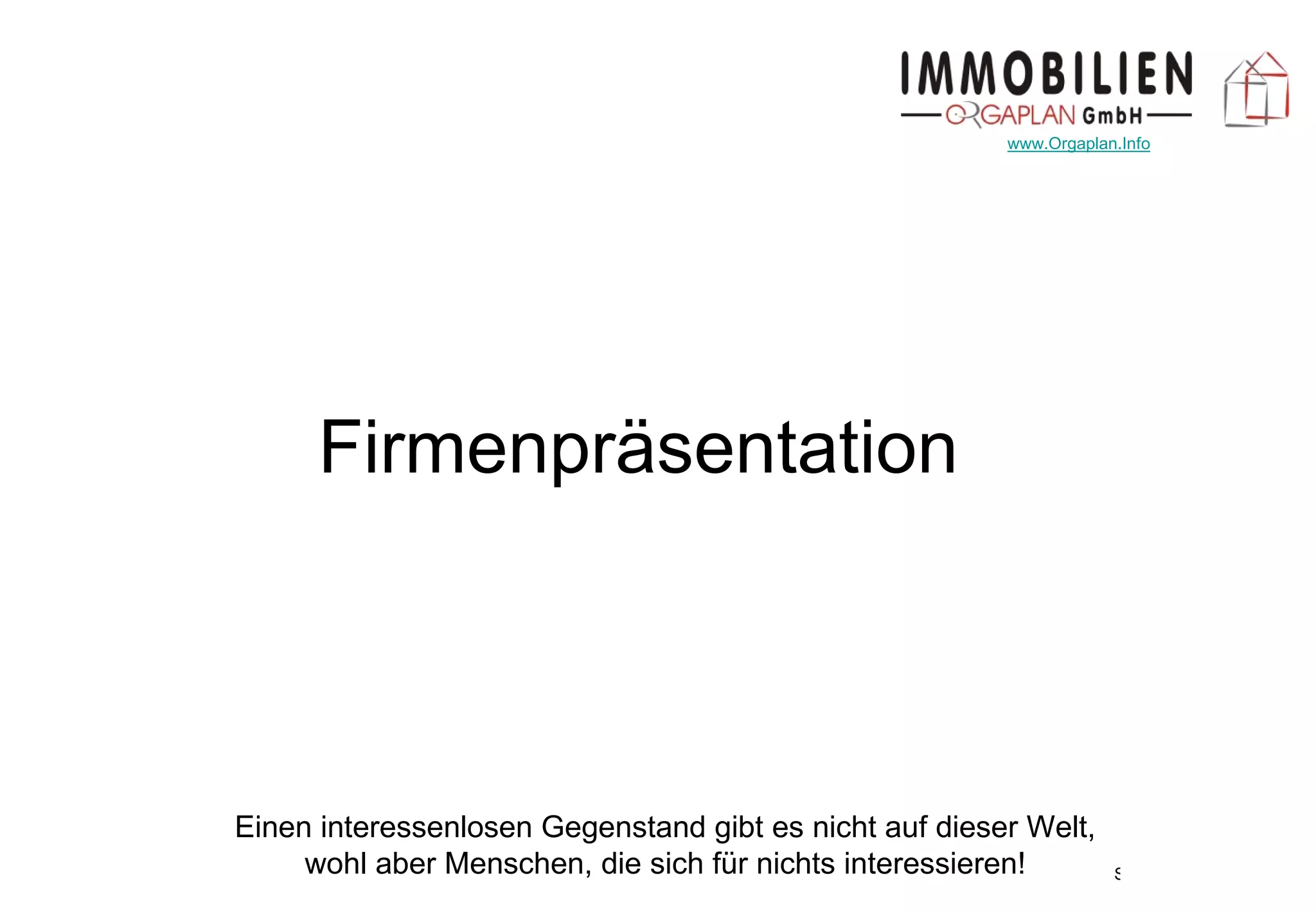 Die Orgaplan GmbH bietet seit über einem Jahrzehnt Beratungs- und Servicetätigkeiten im Immobilienbereich an, einschließlich der Unterstützung von Investoren und Banken bei der Bewältigung von Herausforderungen bei Non-Performing Loans. Die Präsentation beschreibt die Philosophie des Unternehmens sowie erfolgreiche Fallstudien und stellt verschiedene Ansätze zur Wertentwicklung und zum Asset-Management vor. Die Informationen sind als indikativ zu betrachten und dienen als Diskussionsgrundlage, nicht als definitive Aussagen.
