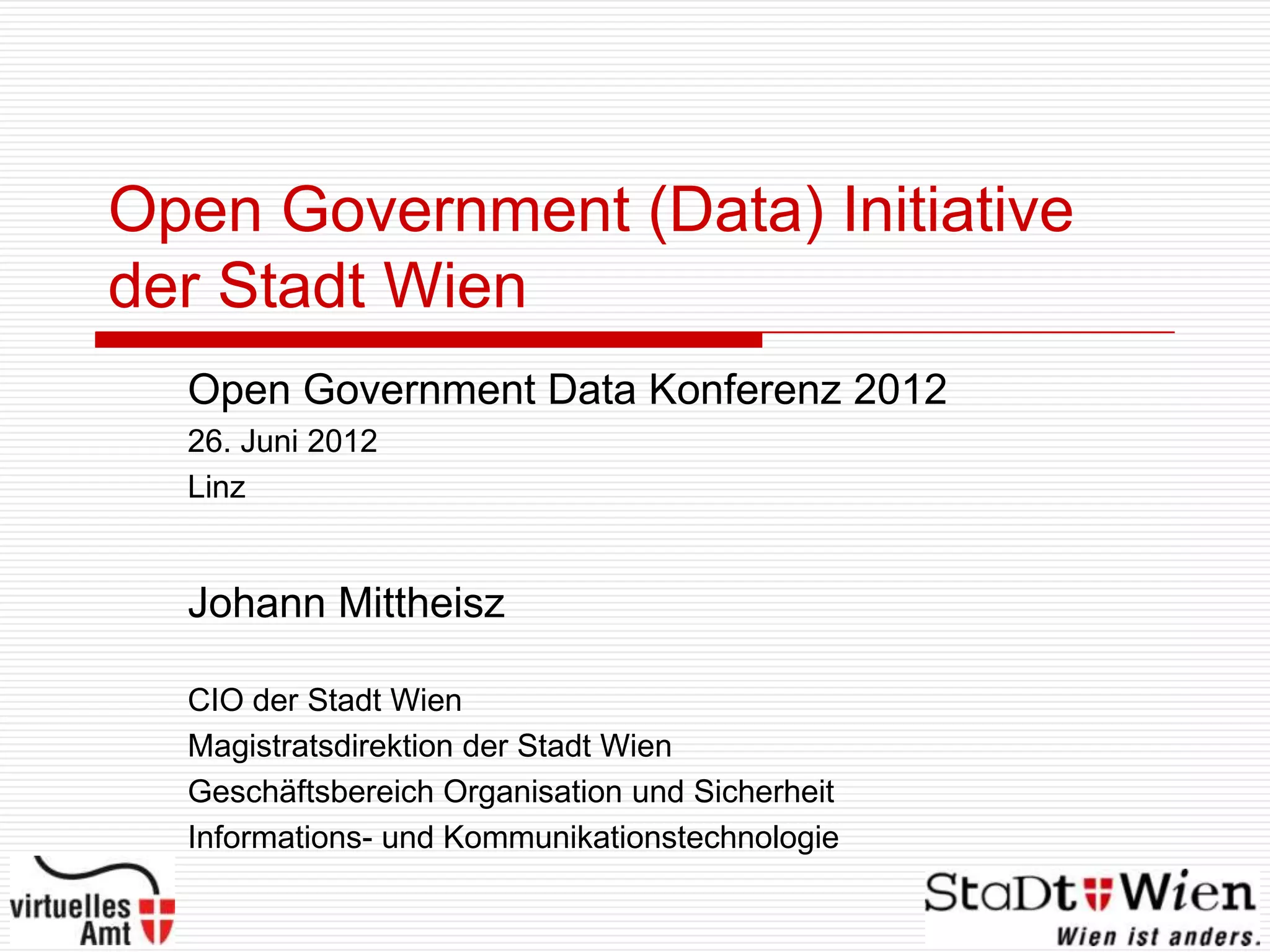 Die Open Government Data Initiative der Stadt Wien zielt darauf ab, Transparenz und Bürgerbeteiligung durch den Zugang zu offenen Daten zu fördern. Die Strategie umfasst mehrere Phasen, darunter die Erhöhung der Datentransparenz, die Verbesserung der offenen Partizipation und die Förderung der Zusammenarbeit. Erfolgsfaktoren sind ein kostenloser Datensatzkatalog, einfache Nutzungsbedingungen und die Entwicklung interaktiver Apps.