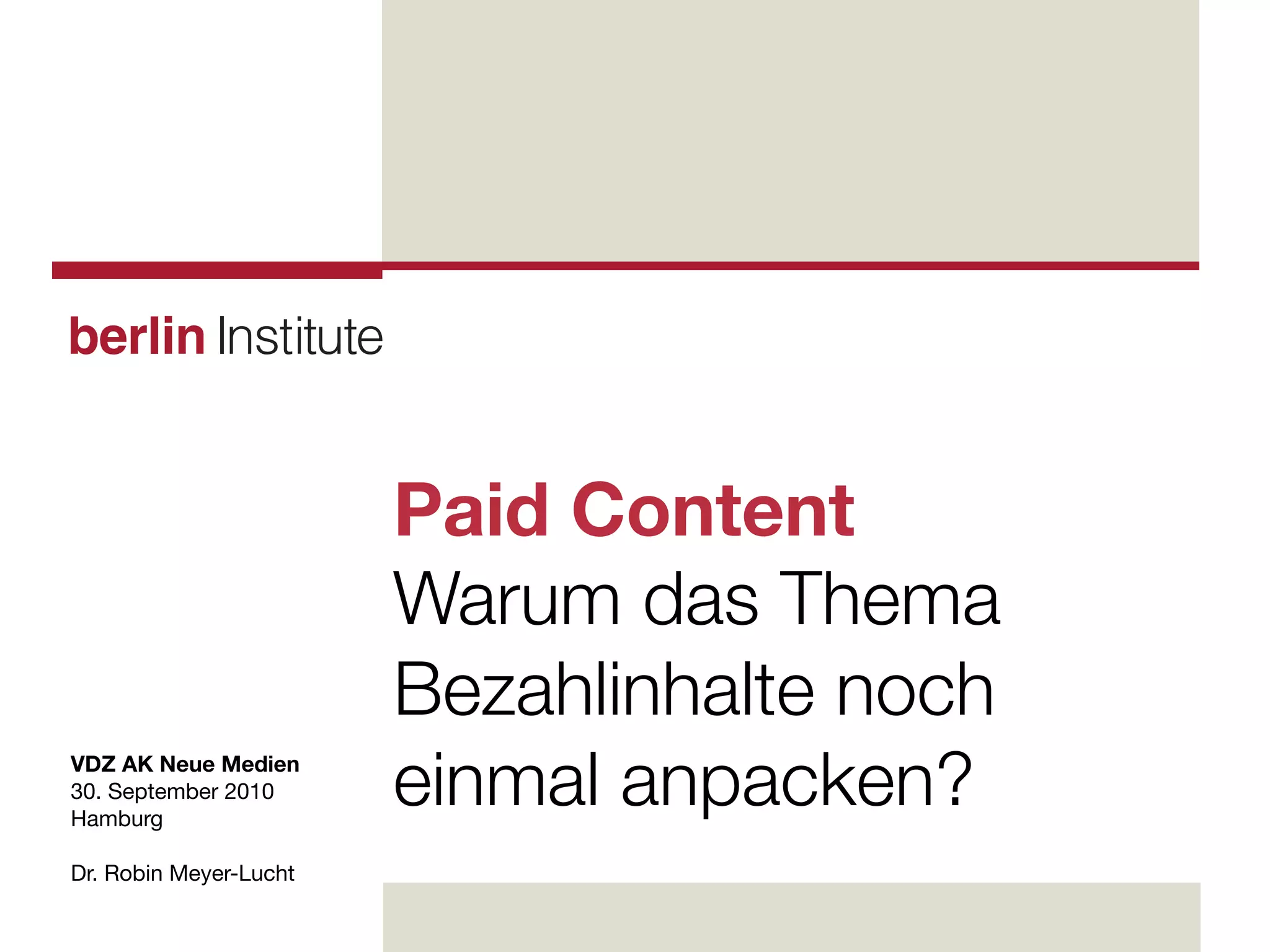 Das Dokument diskutiert die Notwendigkeit und Chancen von Bezahlinhalten für Zeitungsverlage in Deutschland, basierend auf verschiedenen Umfragen und Studien zur Zahlungsbereitschaft der Nutzer. Es betont die steigende Bereitschaft der Nutzer, für qualitativ hochwertige Inhalte zu zahlen, sowie die Wichtigkeit von flexiblen Preisstrategien, Paketangeboten und integrierten Bezahlsystemen zur Monetarisierung digitaler Inhalte. Die Implementierung von Bezahlinhalten wird als entscheidend für die wirtschaftliche Zukunft der Verlage angesehen, wobei verschiedene Strategien zur Nutzerbindung und Preisgestaltung vorgeschlagen werden.