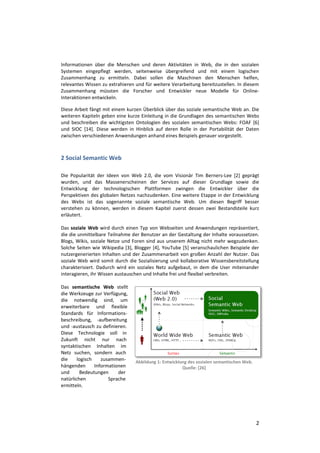 Die Arbeit behandelt das soziale semantische Web, das auf den technologischen Grundlagen des Web 2.0 basiert. Sie thematisiert die Herausforderungen der Interoperabilität und Portabilität von Nutzerdaten auf sozialen Plattformen und erläutert zentrale ontologische Konzepte wie FOAF und SIOC, die für die Beschreibung von Benutzerbeziehungen und Community-Inhalten entscheidend sind. Ziel ist es, eine effizientere Datenverknüpfung und ein besseres gemeinsames Wissensmanagement zu ermöglichen.