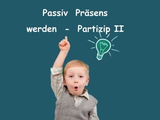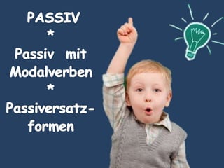 Das Dokument behandelt verschiedene Formen des Passivs und deren Verwendung im Deutschen, insbesondere im Kontext der wissenschaftlichen Bildung für Kinder im Natlab an der FU Berlin. Es zeigt Beispiele für Passivformen sowie deren Ersetzungen und gibt an, wie Kinder frühzeitig an die Wissenschaft herangeführt werden können. Zudem werden Aspekte der Finanzierung und Lösbarkeit von Aufgaben für Projekte im Bildungsbereich thematisiert.